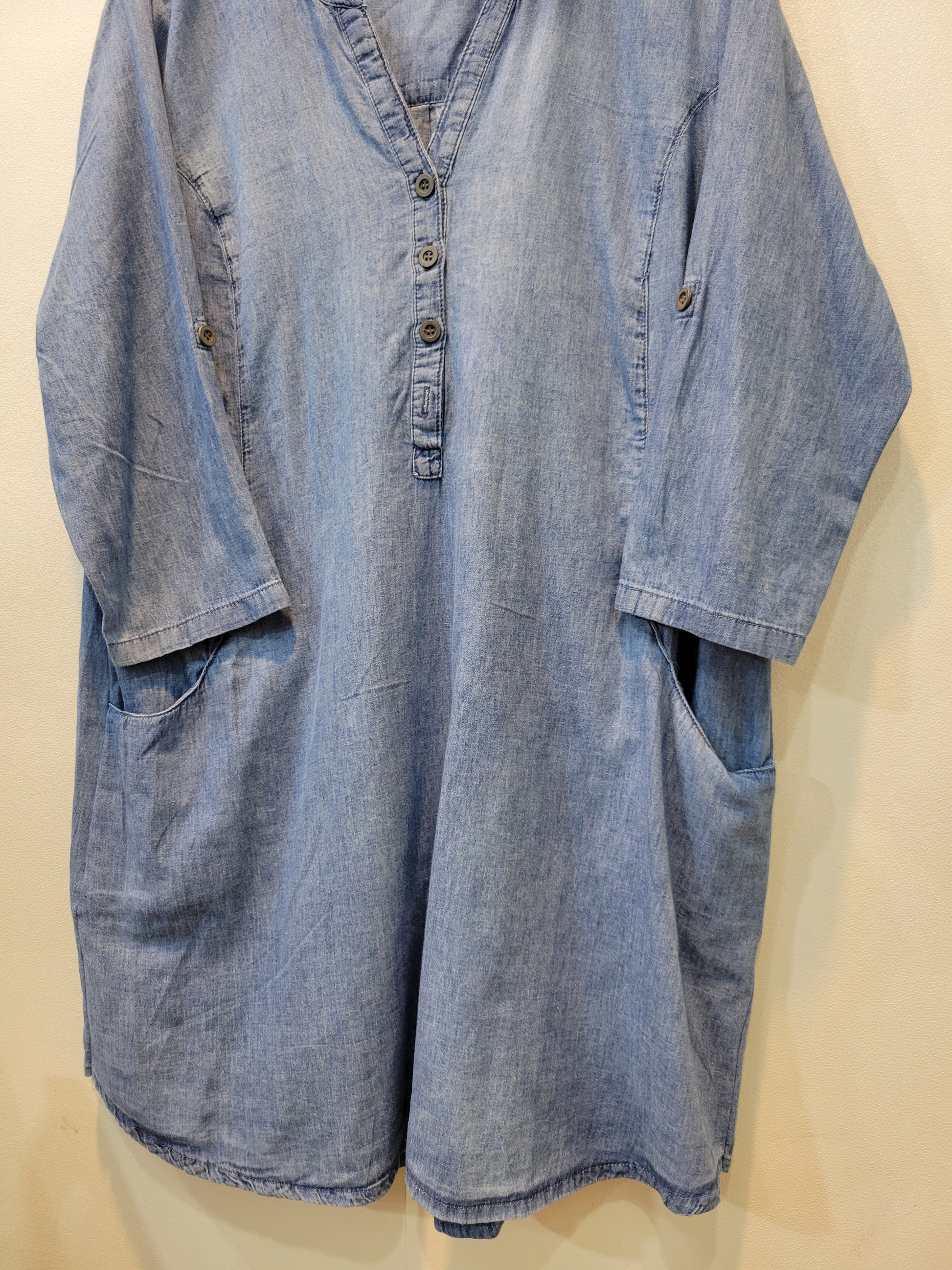 Denim Button Kurti (Light Blue)